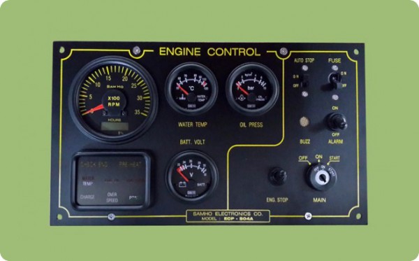 ※ 판넬 스위치 기능 1. Fuse : 메인 전원 스위치 2. Auto Stop : 엔진정지 신호시 정지 되지 않는 수동 모드 선택 스위치 3. Alram : 경고등 수동으로 OFF 4. ENG Stop : 엔진정지 스위치 ※ 옵션기능 : 특정 엔진 속도 기준으로 과속도 차단기능 : 연료게이지 추가 및 연료레벨에 의한 엔진 정지 및 경고기능 ※ 기타사항 : 추가 기능 요청시, 협의 후 진행 가능 |
